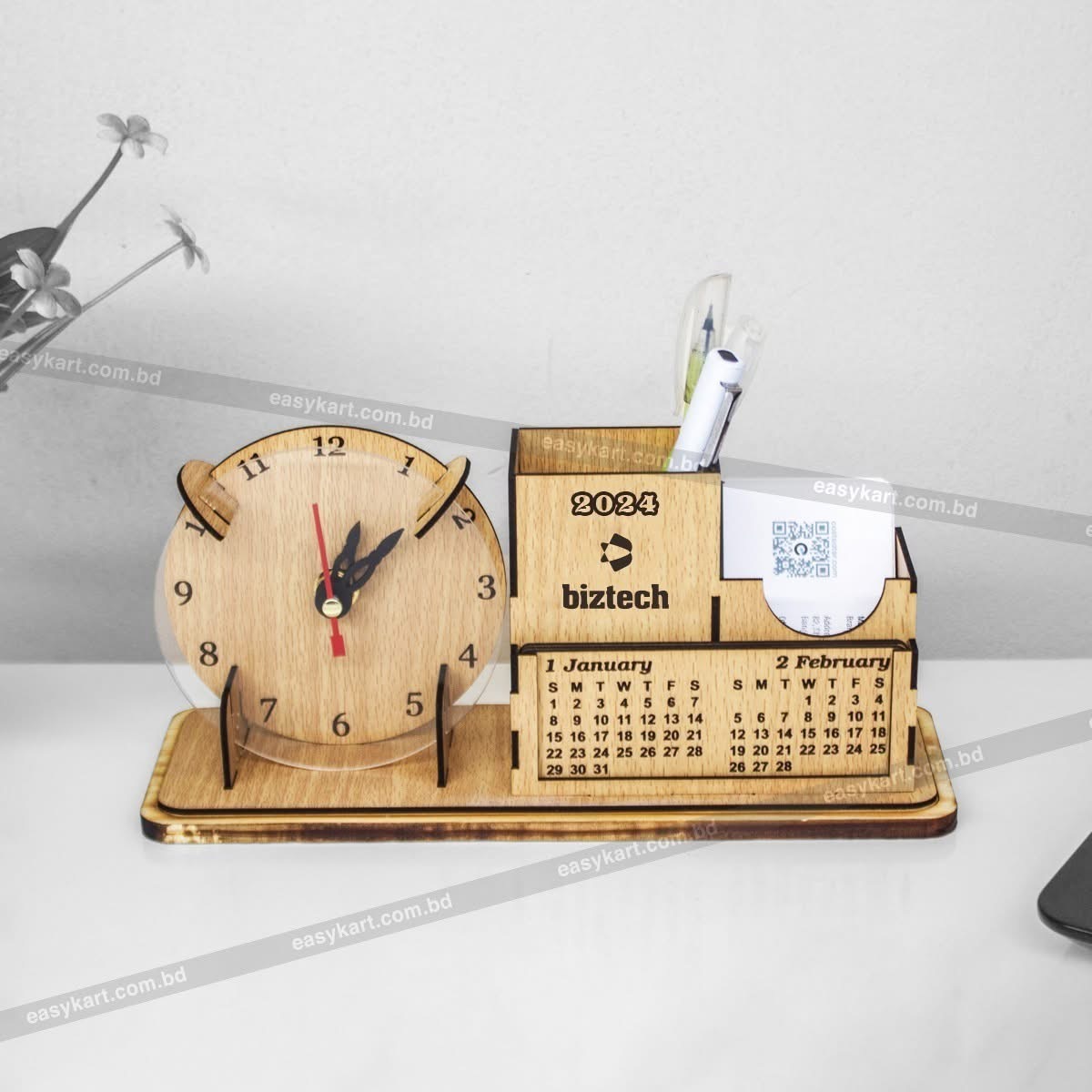 Organize Your Desk with a Wooden Desk Calendar, Pen Holder, Card Holder & Desk Clock