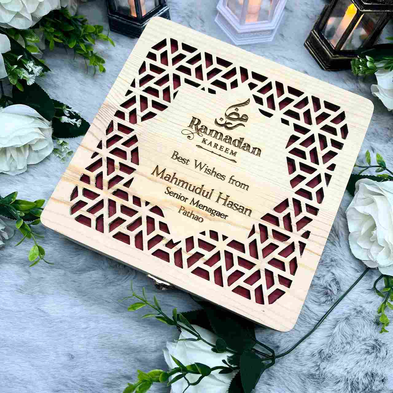 ๐ Order now and make this Ramadan extra special with this beautifully designed Wooden Ramadan Gift Box!
