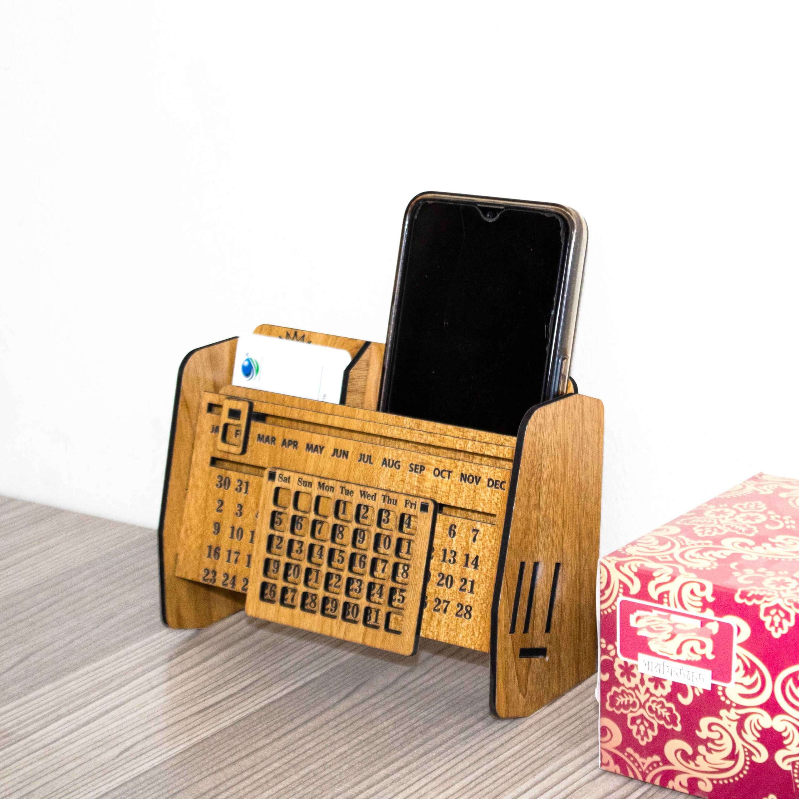 Wooden Desk Calendar with Pen Holder & Card Holder