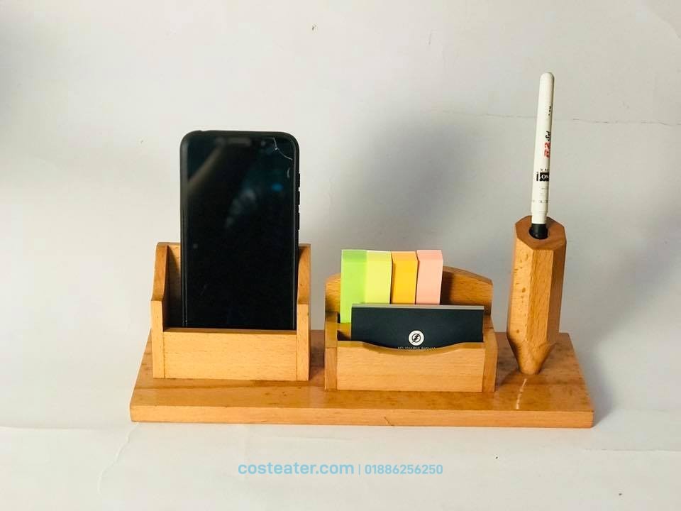 Wooden Desk Organizer – Pen Holder, Card Holder, Mobile Stand and Sticky Paper Storage